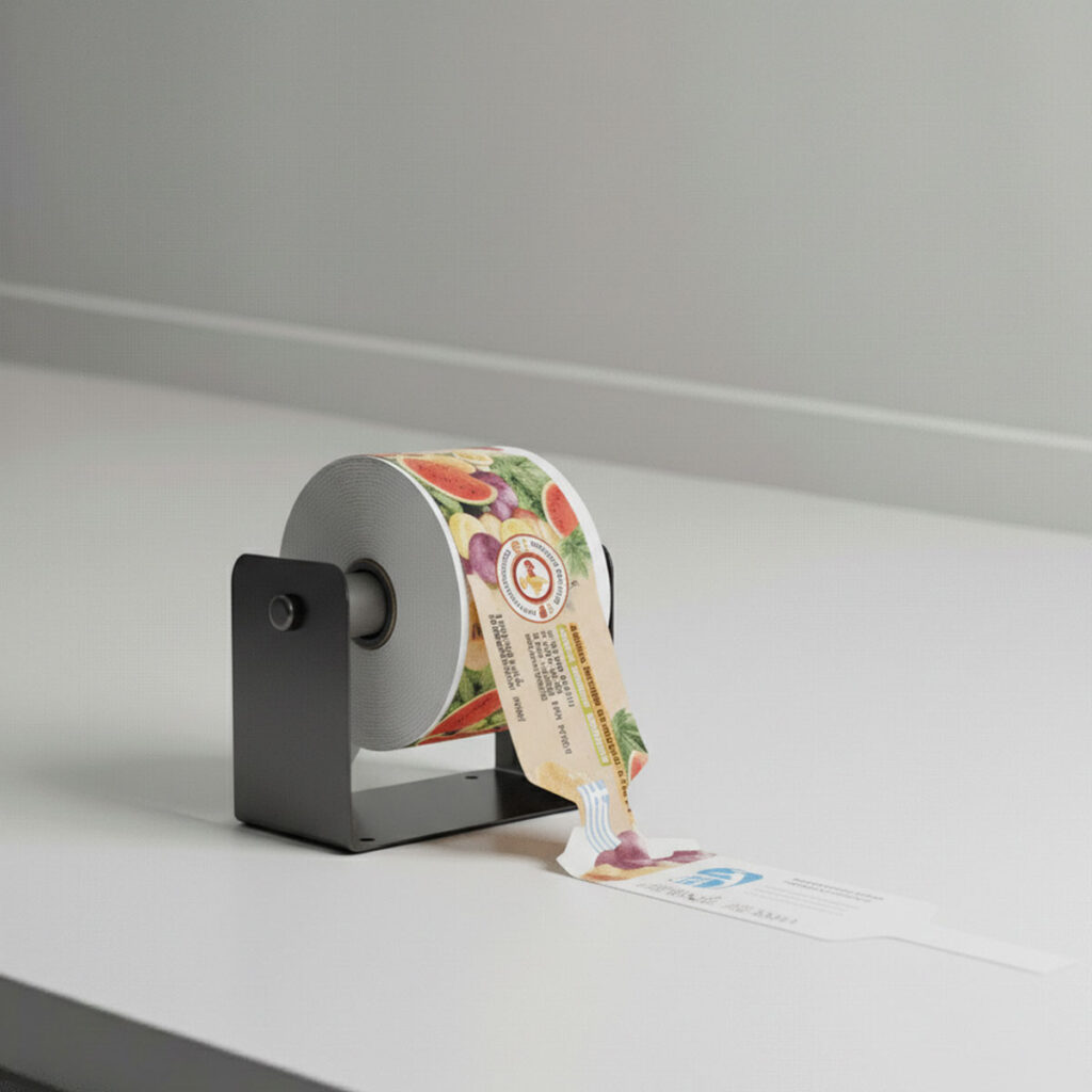 Η μία πλευρά της ετικέτας είναι συνήθως προεκτυπωμένη, είτε με γενική εκτύπωση είτε με τη μακέτα του πελάτη, για αναγνωρισιμότητα του προϊόντος και προβολή του brand. Η άλλη πλευρά είναι ατύπωτη και θερμική, επιτρέποντας την εκτύπωση μεταβλητών δεδομένων — όπως βάρος, ημερομηνία, barcode ή οδηγίες — σε κατάλληλους εκτυπωτές.